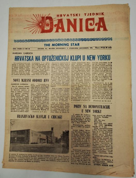 Časopis Danica br. 46/1976. (emigracija)Uređuje: urednički odbor list hrvatskog iseljeništva u SAD-u koji izlazi u više gradova i promijenjenim naslovimaStranica: 15Dimenzije: 29.5x38.5Jezik: ChicagoPismo: LatinicaStanje: Vrlo dobroUvez: MekiGodina: 1976