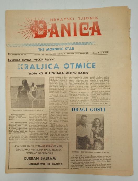 Časopis Danica br. 48/1976. (emigracija)Uređuje: urednički odbor list hrvatskog iseljeništva u SAD-u koji izlazi u više gradova i promijenjenim naslovima Stranica: 15Dimenzije: 29.5x38.5Jezik: ChicagoPismo: LatinicaStanje: Vrlo dobroUvez: MekiGodina: 1976
