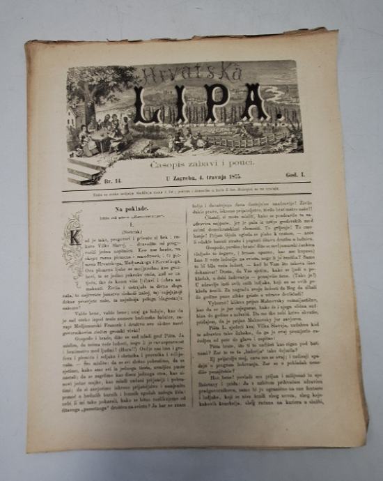 Časopis Lipa br. 14/1875Odgovorni urednik: Dragutin Jagić Stranica: -Dimenzije: 24x31Jezik: ZagrebPismo: LatinicaStanje: DobroUvez: MekiGodina: 1875