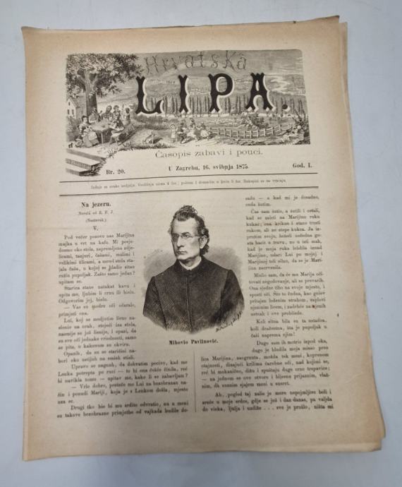 Časopis Lipa br. 20/1875Odgovorni urednik: Dragutin Jagić Stranica: -Dimenzije: 24x31Jezik: ZagrebPismo: LatinicaStanje: DobroUvez: MekiGodina: 1875