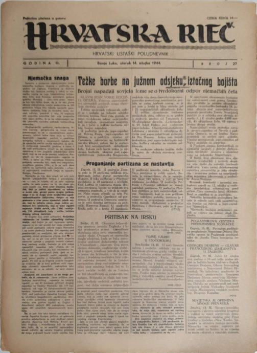 Časopis Hrvatska rieč: Godina III, Broj 27/1944