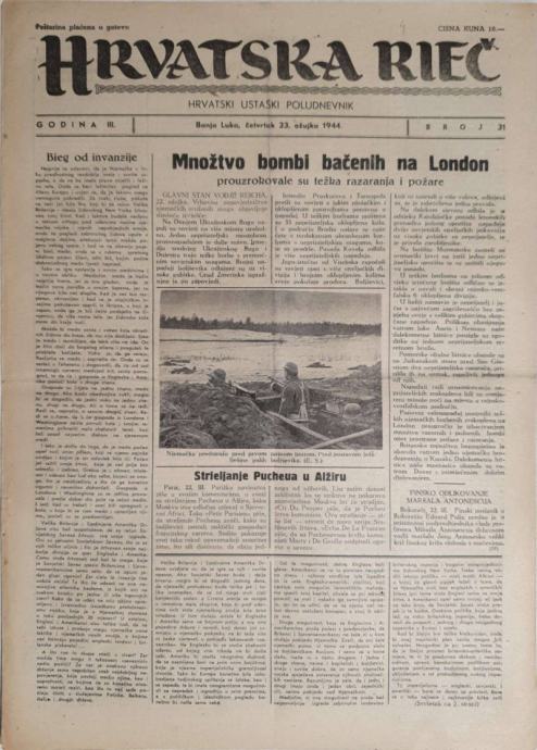 Časopis Hrvatska rieč: Godina III, Broj 31/1944