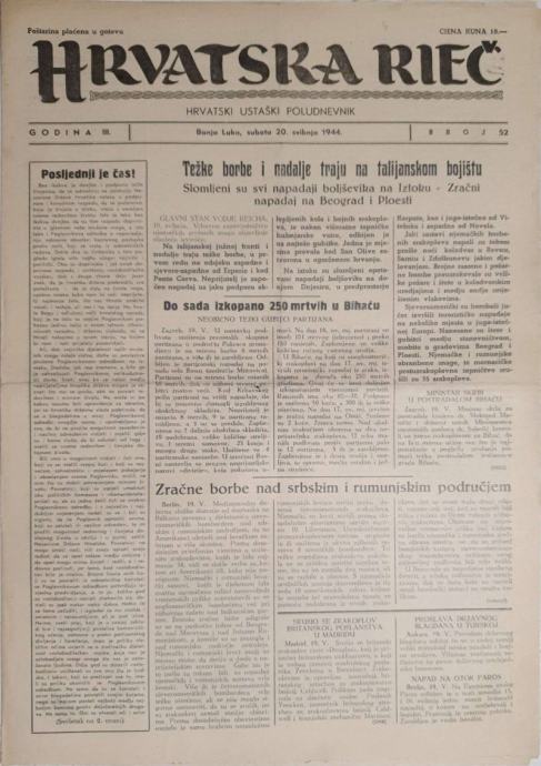 Časopis Hrvatska rieč: Godina III, Broj 52/1944