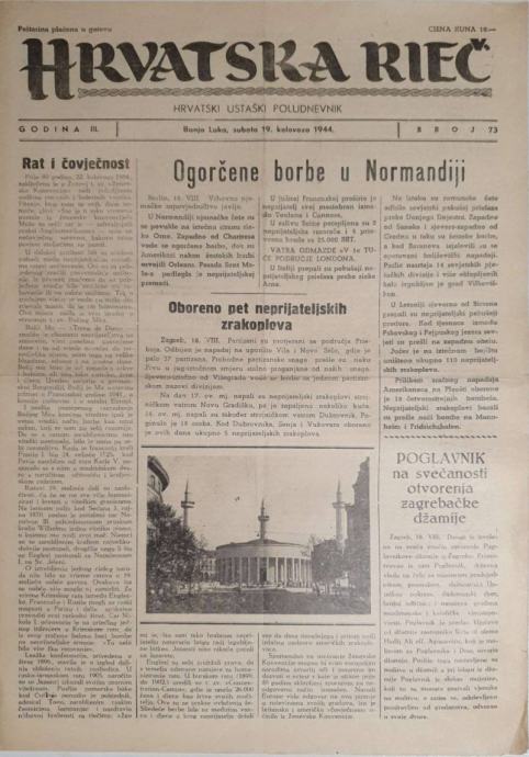 Časopis Hrvatska rieč: Godina III, Broj 73/1944