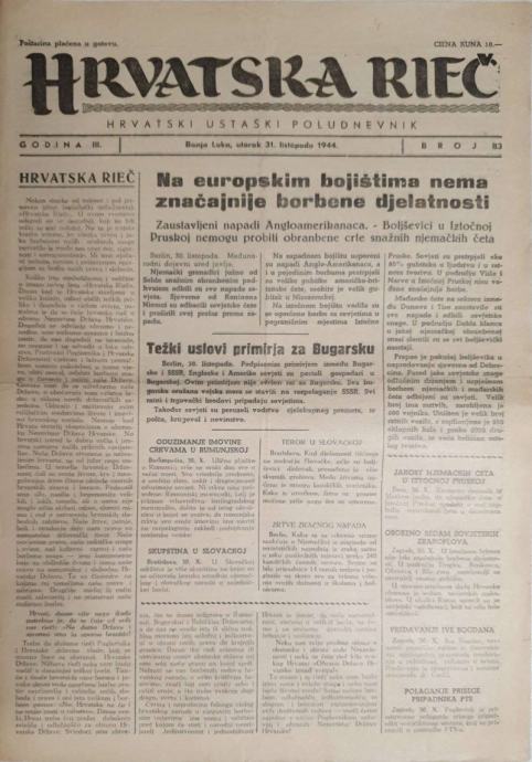Časopis Hrvatska rieč: Godina III, Broj 83/1944