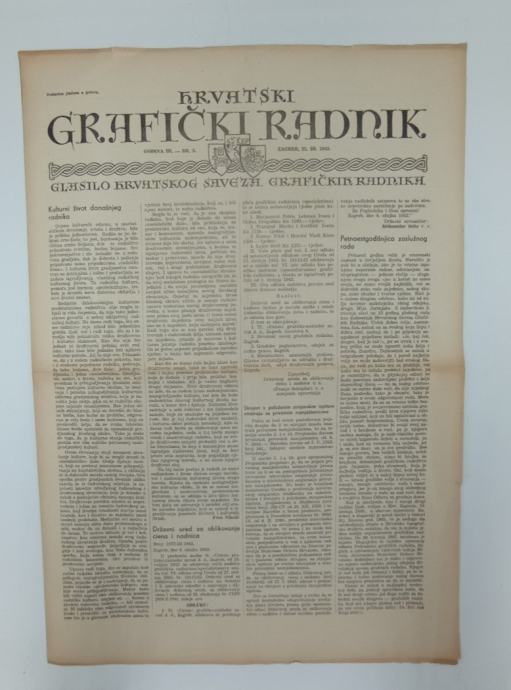 Časopis Hrvatski grafički radnik br.3/1943.Urednik: Franjo GrubešićStranica: 4Dimenzije: 35x50Jezik: ZagrebPismo: LatinicaStanje: DobroUvez: MekiGodina: 1943