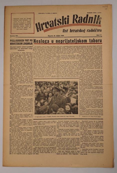 Časopis Hrvatski radnik br. 11/1944.list hrvatskog radništva Glavni urednik: Vjekoslav Blaškov Stranica: 8Dimenzije: 31.5x47Jezik: ZagrebPismo: LatinicaStanje: Vrlo dobroUvez: MekiGodina: 1944