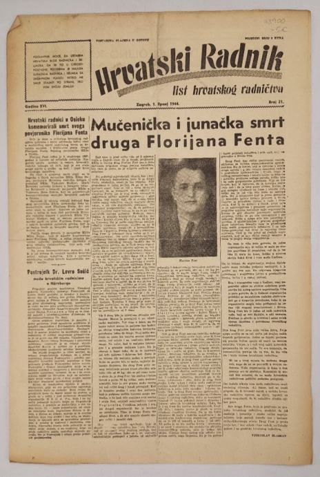 Časopis Hrvatski radnik br. 21/1944.list hrvatskog radništva Glavni urednik: Vjekoslav Blaškov Stranica: 8Dimenzije: 31.5x47Jezik: ZagrebPismo: LatinicaStanje: Vrlo dobroUvez: MekiGodina: 1944