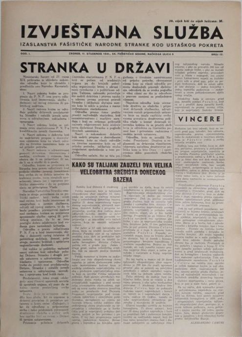 Časopis Izvještajna služba: godina I, broj 12/1941