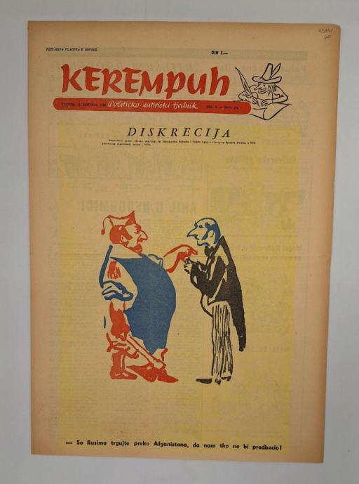 Časopis Kerempuh br. 224/1950.Glavni i odgovorni urednik: Fadil HadžićStranica: 4Dimenzije: 31.5x45Jezik: ZagrebPismo: LatinicaStanje: OdličnoUvez: MekiGodina: 1950
