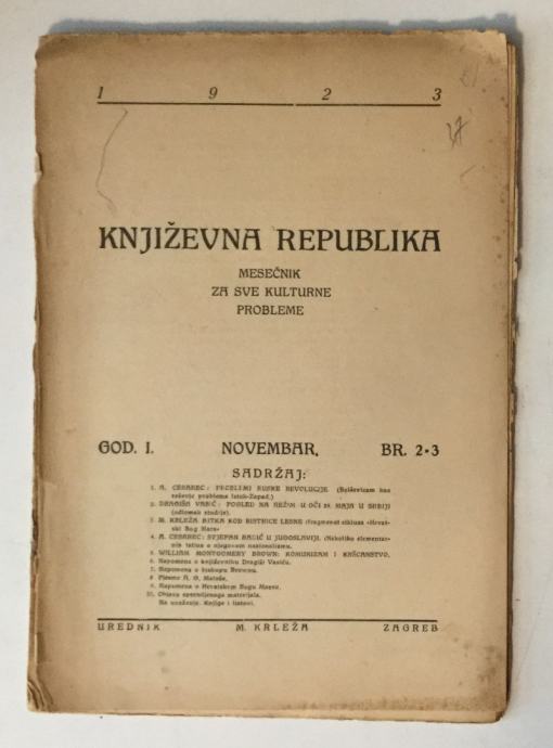 - MJESEČNIK ZA SVE KULTURNE PROBLEME - GODINAI., NOVEMBAR, BROJ 2 - 3- UREDNIK:MIROSLAV KRLEŽA