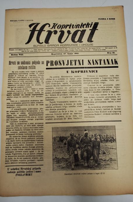 Časopis Koprivnički Hrvat br. 25/1942.Glasilo grada Koprivnice i okolice Glavni i odgovorni urednik: Martin NemecStranica: 4Dimenzije: 29x43Jezik: KoprivnicaPismo: LatinicaStanje: Vrlo dobroUvez: MekiGodina: 1942