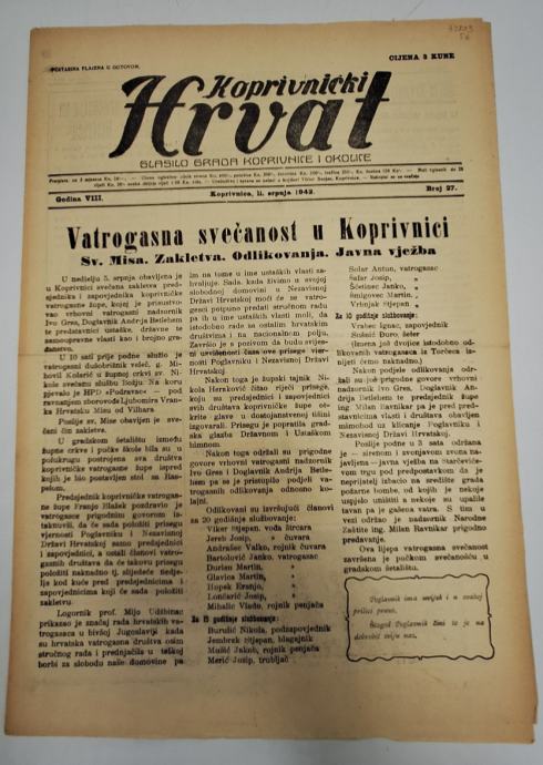 Časopis Koprivnički Hrvat br. 27/1942.Glasilo grada Koprivnice i okolice Glavni i odgovorni urednik: Martin NemecStranica: 4Dimenzije: 29x43Jezik: KoprivnicaPismo: LatinicaStanje: Vrlo dobroUvez: MekiGodina: 1942