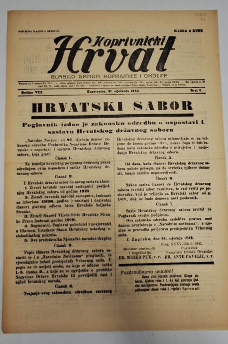 Časopis Koprivnički Hrvat br. 5/1942.Glasilo grada Koprivnice i okolice Glavni i odgovorni urednik: Martin NemecStranica: 4Dimenzije: 29x43Jezik: KoprivnicaPismo: LatinicaStanje: Vrlo dobroUvez: MekiGodina: 1942
