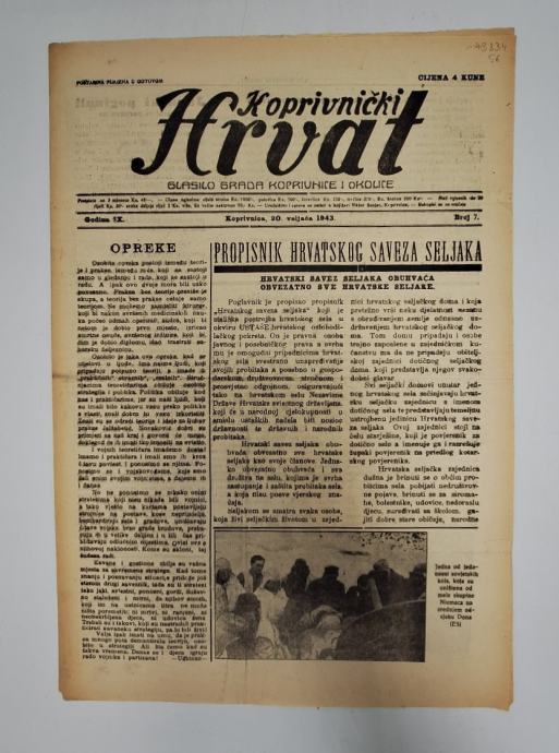 Časopis Koprivnički Hrvat br. 7/1943.Glasilo grada Koprivnice i okoliceGlavni urednik: Martin NemecStranica: 4Dimenzije: 29x43Jezik: KoprivnicaPismo: LatinicaStanje: OdličnoUvez: MekiGodina: 1943