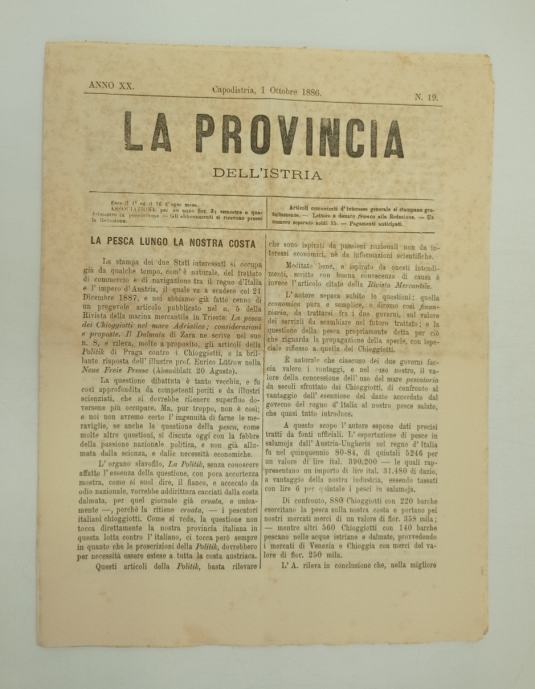 Časopis La provincia dell'istria 17/1886Stranica: 8Dimenzije: 23x29Jezik: KoparPismo: LatinicaStanje: Vrlo dobroUvez: MekiGodina: 1884
