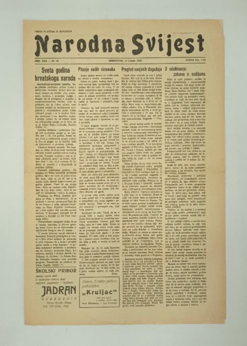 Časopis Narodna svijest br. 24/1940.Urednik: Vicko BjelišIzlazi svake srijedeStranica: 4Dimenzije: 32x47.5Jezik: DubrovnikPismo: LatinicaStanje: Vrlo dobroUvez: MekiGodina: 1940