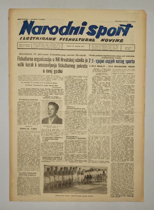 Časopis Narodni sport br. 116/1947.Ilustrirane fiskulturne novineGlavni i odgovorni urednik: Miroslav Habunek Stranica: 8Dimenzije: 31.5x45Jezik: ZagrebPismo: LatinicaStanje: Vrlo dobroUvez: MekiGodina: 1947