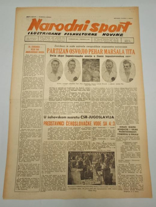 Časopis Narodni sport br. 122/1947.Glasilo fiskulturnog saveza Hrvatske Glavni i odgovorni urednik: Miroslav Habunek Stranica: 4Dimenzije: 32x45.5Jezik: ZagrebPismo: LatinicaStanje: Vrlo dobroUvez: MekiGodina: 1947