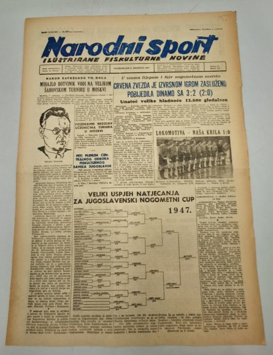 Časopis Narodni sport br. 123/1947.Glasilo fiskulturnog saveza Hrvatske Glavni i odgovorni urednik: Miroslav Habunek Stranica: 4Dimenzije: 32x45.5Jezik: ZagrebPismo: LatinicaStanje: Vrlo dobroUvez: MekiGodina: 1947