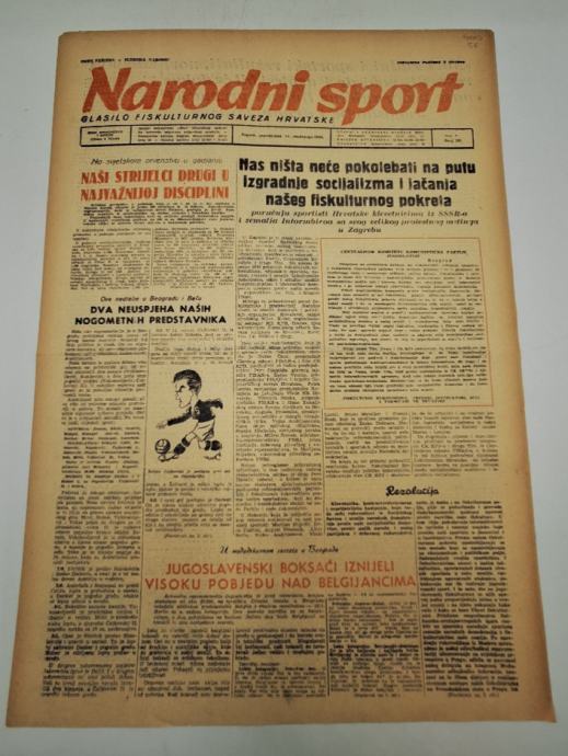 Časopis Narodni sport br. 261/1949.Glasilo fiskulturnog saveza Hrvatske Glavni i odgovorni urednik: Miroslav Habunek Stranica: 4Dimenzije: 32x45.5Jezik: ZagrebPismo: LatinicaStanje: Vrlo dobroUvez: MekiGodina: 1949
