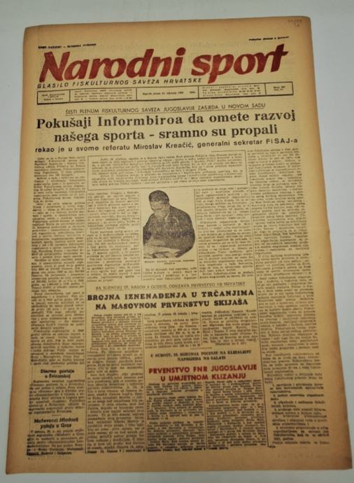 Časopis Narodni sport br. 282/1950.Glasilo fiskulturnog saveza Hrvatske Glavni i odgovorni urednik: Miroslav Habunek Stranica: 4Dimenzije: 32x45.5Jezik: ZagrebPismo: LatinicaStanje: Vrlo dobroUvez: MekiGodina: 1950