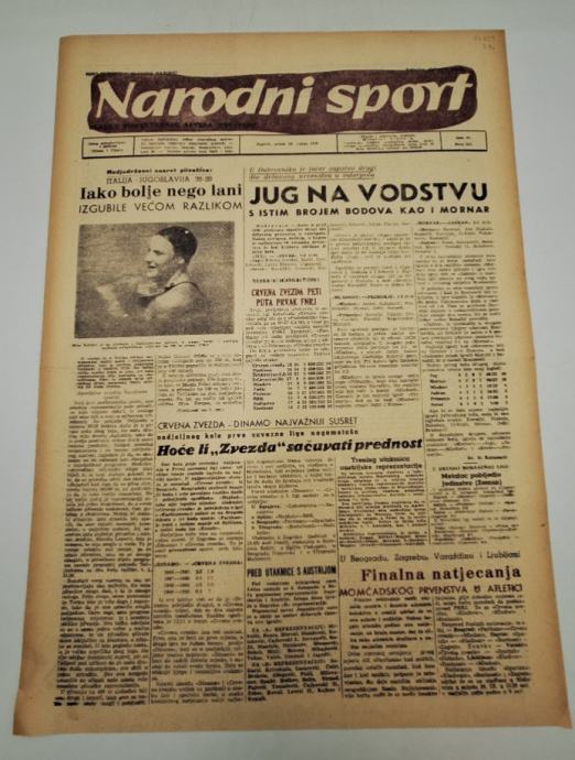 Časopis Narodni sport br. 351/1950.Glasilo fiskulturnog saveza Hrvatske Glavni i odgovorni urednik: Miroslav Habunek Stranica: 4Dimenzije: 32x45.5Jezik: ZagrebPismo: LatinicaStanje: Vrlo dobroUvez: MekiGodina: 1950