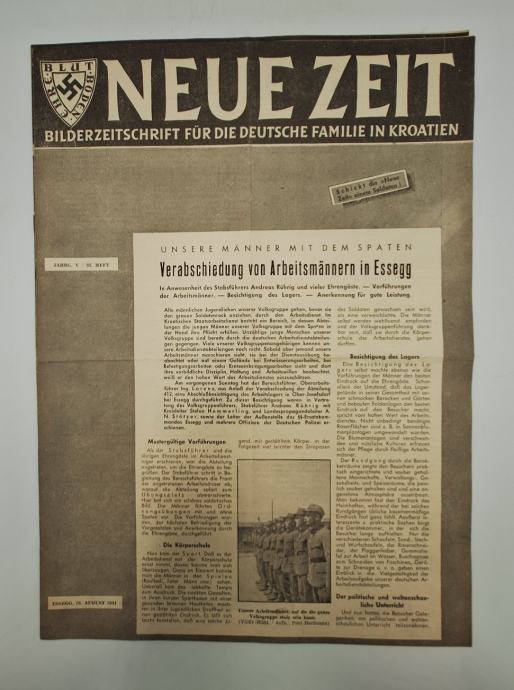 Časopis Neue Zeit br. 33/1944Stranica: 12Dimenzije: 30x41.5Jezik: OsijekPismo: LatinicaStanje: Vrlo dobroUvez: MekiGodina: 1944