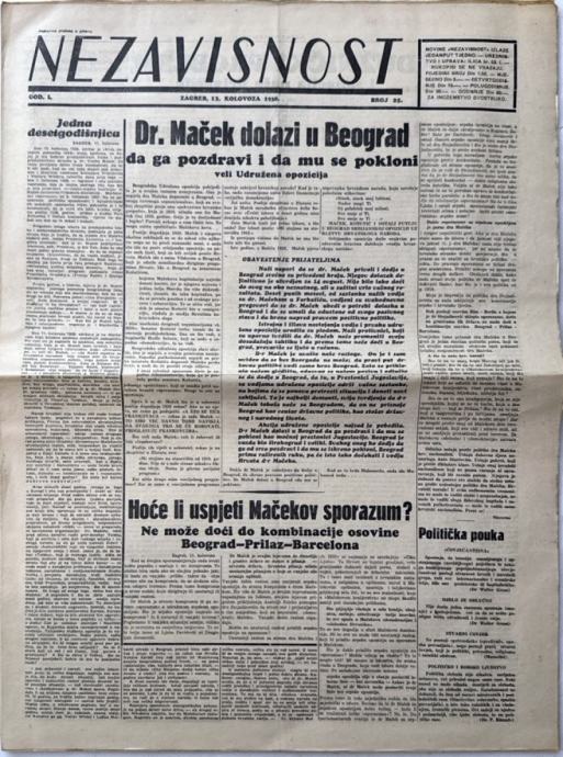 Časopis Nezavisnost broj 25/ 1938.