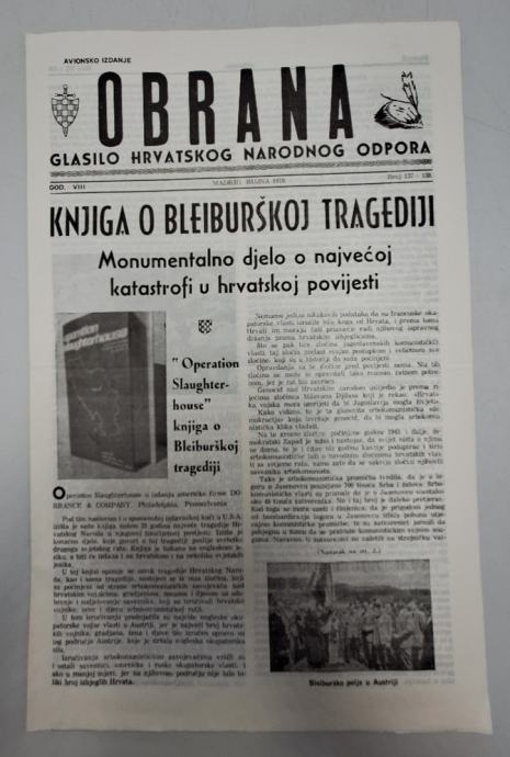 Časopis Obrana br. 137-138/1970.Glasilo hrvatskog narodnog odporaUređuje: radni skup Stranica: 16Dimenzije: 25x40Jezik: MadridPismo: LatinicaStanje: Vrlo dobroUvez: MekiGodina: 1970