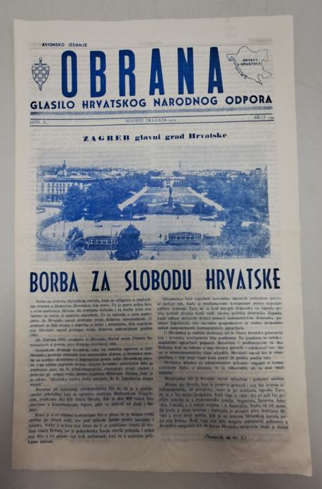 Časopis Obrana 159/1972.Glasilo hrvatskog narodnog odporaUređuje: radni skup Stranica: 12Dimenzije: 25x40Jezik: madridPismo: LatinicaStanje: Vrlo dobroUvez: MekiGodina: 1972