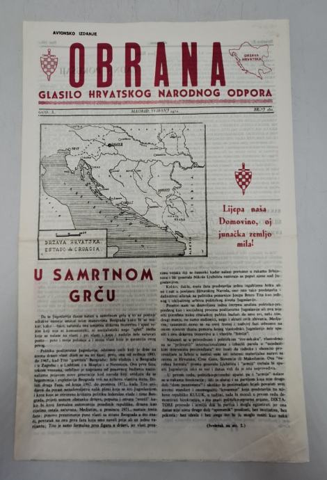 Časopis Obrana 160/1972.Glasilo hrvatskog narodnog odporaUređuje: radni skup Stranica: 12Dimenzije: 25x40Jezik: MadridPismo: LatinicaStanje: Vrlo dobroUvez: MekiGodina: 1972