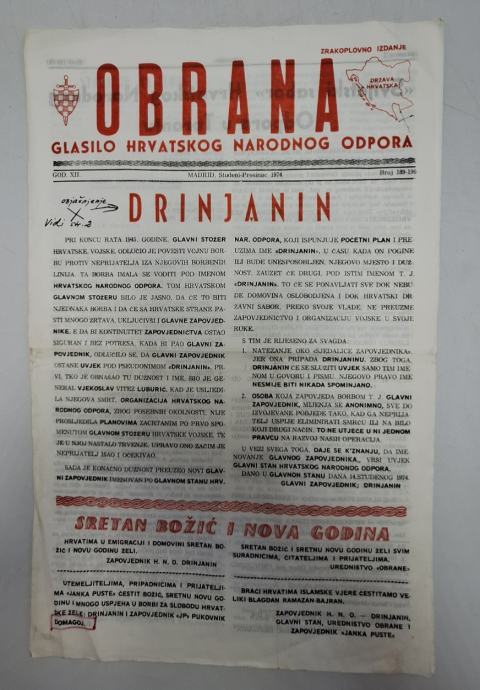 Časopis Obrana br. 189-190/1974. Glasilo hrvatskog narodnog odporaUređuje: radni skup Stranica: 8Dimenzije: 25x40Jezik: MadridPismo: LatinicaStanje: Vrlo dobroUvez: MekiGodina: 1974