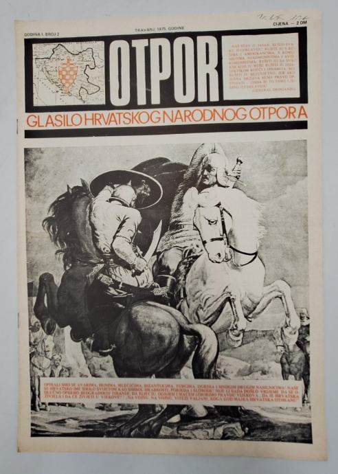 Časopis Otpor br. 2/1975.Glasilo hrvatskog narodnog otporaGlavni i odgovorni urednik: Stipe BilandžićStranica: 16Dimenzije: 24.5x34.5Jezik: StuttgartPismo: LatinicaStanje: Vrlo dobroUvez: MekiGodina: 1975