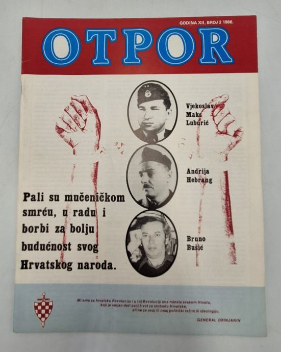Časopis Otpor br. 2/1986.Glasilo hrvatskog narodnog otporaGlavni i odgovorni urednik: Mehmed SokolovićStranica: 40Dimenzije: 19x28Jezik: StuttgartPismo: LatinicaStanje: Vrlo dobroUvez: MekiGodina: 1986