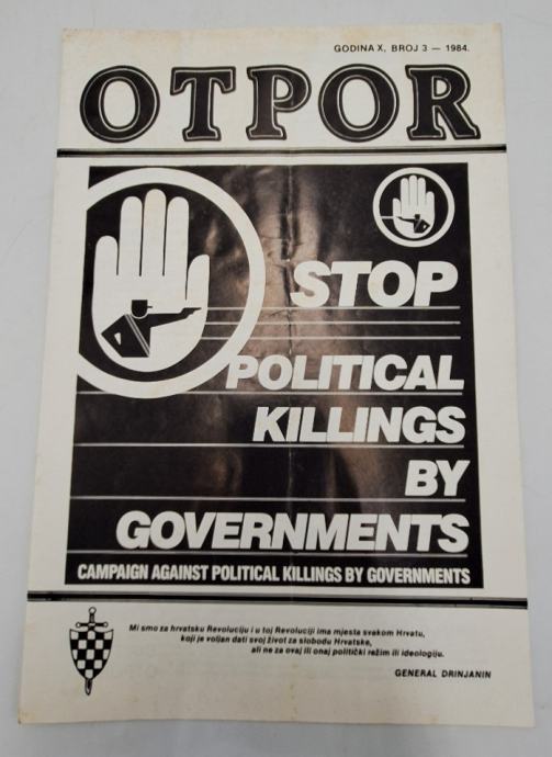 Časopis Otpor br. 3/1984.Glasilo hrvatskog narodnog otporaGlavni i odgovorni urednik: Mehmed SokolovićStranica: 19Dimenzije: 19x28Jezik: StuttgartPismo: LatinicaStanje: Vrlo dobroUvez: MekiGodina: 1984