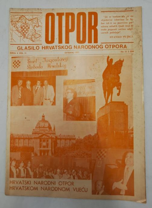 Časopis Otpor br. 6/1977.Glasilo hrvatskog narodnog otporaGlavni i odgovorni urednik: Mehmed SokolovićStranica: 24Dimenzije: 19x28Jezik: StuttgartPismo: LatinicaStanje: Vrlo dobroUvez: MekiGodina: 1977