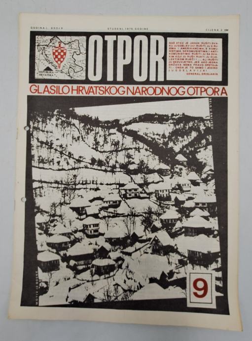 Časopis Otpor br. 9/1975.Glasilo hrvatskog narodnog otporaGlavni i odgovorni urednik: Stipe BilandžićStranica: 16Dimenzije: 24.5x34.5Jezik: StuttgartPismo: LatinicaStanje: Vrlo dobroUvez: MekiGodina: 1975