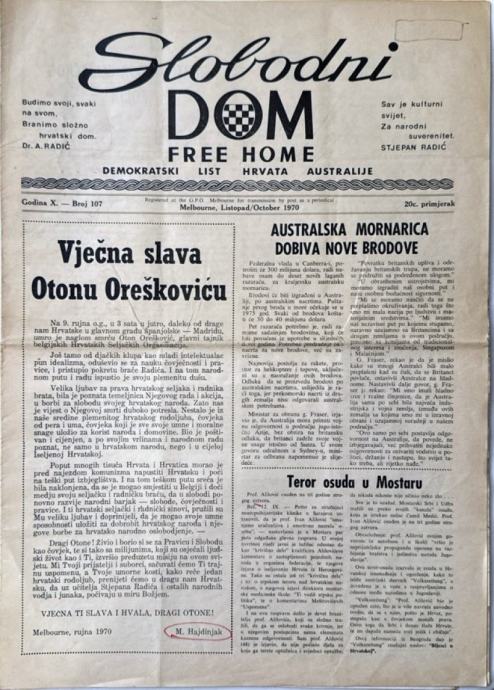 Časopis: Slobodni dom - Free home - Demokratski list hrvata Australije