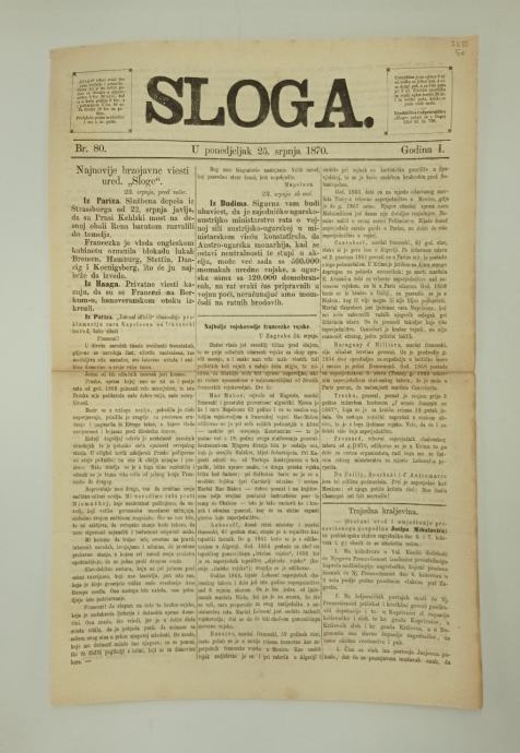 Časopis Sloga br. 80/1870.