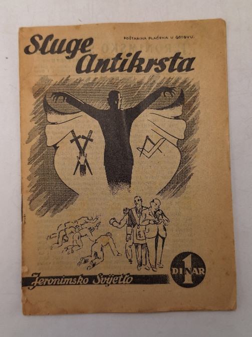 Sluge AntikristaČasopis za prosvjetu, broj 10. Antižidovska, antikomunistička propagandaOdgovorni urednik: Josip AndrićStranica: 30Dimenzije: 12x17Jezik: ZagrebPismo: LatinicaStanje: Vrlo dobroUvez: MekiGodina: 1935