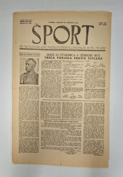 Časopis Šport 37/1943Glavni i odgovorni urednik: Božidar SarkanjStranica: 6Dimenzije: 30.5x47Jezik: ZagrebPismo: LatinicaStanje: DobroUvez: MekiGodina: 1943