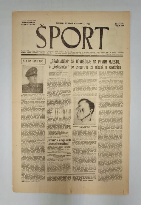 Časopis Šport 18/1943Glavni i odgovorni urednik: Božidar SarkanjStranica: 6Dimenzije: 30.5x47Jezik: ZagrebPismo: LatinicaStanje: DobroUvez: MekiGodina: 1943