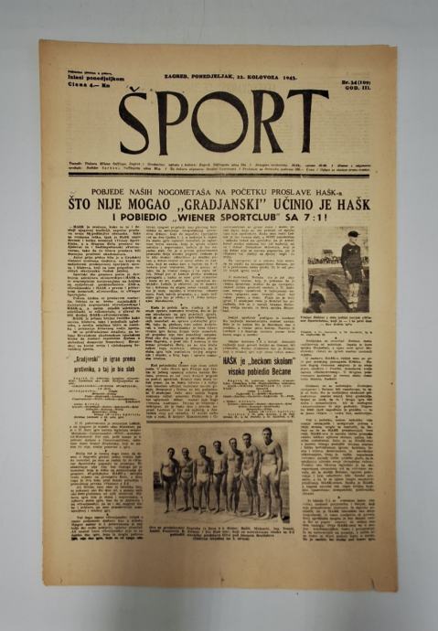 Časopis Šport 34/1943Glavni i odgovorni urednik: Božidar SarkanjStranica: 8Dimenzije: 30.5x47Jezik: ZagrebPismo: LatinicaStanje: DobroUvez: MekiGodina: 1943