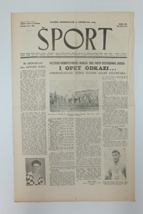 Časopis Šport 40/1943Glavni i odgovorni urednik: Božidar SarkanjStranica: 6Dimenzije: 30.5x47Jezik: ZagrebPismo: LatinicaStanje: DobroUvez: MekiGodina: 1943
