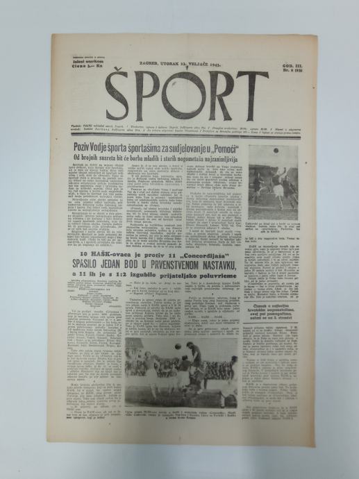 Časopis Šport 8/1943Glavni i odgovorni urednik: Božidar SarkanjStranica: 6Dimenzije: 30.5x47Jezik: ZagrebPismo: LatinicaStanje: DobroUvez: MekiGodina: 1943