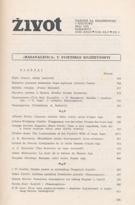 Časopis Život Hasanaginica