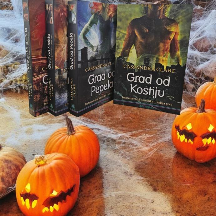 Cassandra Clare komplet sadrži: @1. Grad od Kostiju – Instrumentarij smrtnika – knjiga prva @Kada petnaestogodišnja Clary Fray kao mjesto za noćni izlazak s najboljim prijateljima Simonom odabere klub Pandemonij u New Yorku, ni u snu ne očekuje da bi tamo mogla svjedočiti umorstvu – a još manje da će ga početi troje tinejdžera čija su tijela prekrivena neobičnim tetovažama. Clary bi bila pozvala policiju, ali kako im objasniti što se dogodilo kad se tijelo ubijenog počelo postupno smanjivati, da bi na kraju i posve nestalo, a ubojice su vidljive samo njoj?… @@2. Grad od Pepela – Instrumentarij smrtnika – knjiga druga @U Gradu od Kostiju petnaestogodišnjak Clary Fray susrela se sa svijetom Sjenolovaca, tajnim plemenom ratnika koji život posvećuju ubijanju demona. Posljedice tog silovitog susreta su nestanak Claryne majke i pojava grotesknog čudovišta koje gotovo ubije Clary. Grad od Pepela nastavlja gdje je njegov prethodnik stao: Clary očajnički pokušava život vratiti u normalu, no to se pokazuje nemogućim… @@3. Grad od Stakla – Instrumentarij smrtnika – knjiga treća @U Gradu od Kostiju, petnaestogodišnja Clary Fray susrela se sa svijetom sjenolovaca, tajnog odreda posvećenog istjerivanju demona iz našeg svijeta. Susret je završio tragično jer je Claryna majka nestala, a groteskno čudovište koje je poslao zao i moćni Valentine napalo je i gotovo ubilo Clary. Grad od Pepela nastavlja gdje je Grad od Kostiju stao: Clary očajnički pokušava život vratiti u normalu, no to se pokazuje nemogućim… @@4. Grad palih anđela – Instrumentarij smrtnika – knjiga četvrtog @Rata smrtnika je završena i šestogodišnja Clary Fray vratila se kući u New York , uzbuđena zbog svih mogućnosti pred njom. Uvježbavaju je da postane sjenolovka i nauči koristiti svoje jedinstvene moći. Majka joj se udaje za ljubav svoga života, Lukea. Donjosvjećani i sjenolovci napokon su sklopili mir. I, najvažnije – napokon može Jacea zvati svojim dečkom. Ne, sve ima svoju cijenu…Dimenzije: 15×23 cmJezik: ZAGREBPismo: LatinicaStanje: Nova knjigaUvez: Meki