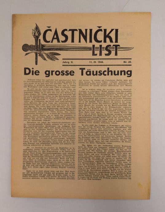 Častnički list nr. 20./1944.Stranica: 4Dimenzije: 24x31Jezik: -Pismo: LatinicaStanje: Vrlo dobroUvez: MekiGodina: 1944