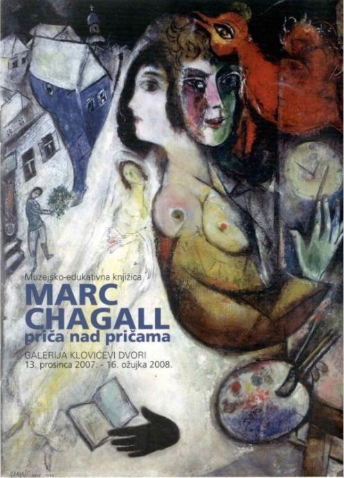 Izložba vodećeg svjetskog slikara ˝Marc Chagall - priča nad pričama˝ otvarena je 13. prosinca 2007. u Galeriji Klovićevi dvori.Djela su postavljena u 12 dvorana Galerije, a izložba obuhvaća 162 Chagallova vrhunska djela - uljne slike, grafičke listove, ilustracije, crteže, litografije, kolaže, skulpture i tapiserije. Izložba će dati pravi presjek toga velikog opusa, a razdijeljena je prema temama - religiozne i ljubavne teme, teme iz cirkusa, zatim njegov nadrealistički opus kao i ilustracije za La Fontaineove basne te za autobiografiju ˝Moj život˝. Prvo djelo s izložbe je Chagallov autoportret nastao 1909., a izložba obuhvaća djela sve do osamdesetih godina prošloga stoljeća s kraja umjetnikova života. Djela su sabrana iz Muzeja Biblijskih poruka Marca Chagalla u Nici, Centra Georges Pompidou iz Pariza te iz Fondacije Maeght iz Saint-Paul de Vencea.Radove za zagrebačku izložbu odabrao je Jean-Michell Foray, donedavni direktor Chagallova muzeja u Nici, a izložba je ostvarena u suradnji s umjetnikovom unukom Meret Meyer. Izložba će biti otvorena do 16. ožujka 2008., a ostvarena je uz financijsku potporu Ministarstva kulture, Gradskog ureda za kulturu te više sponzora.Stranica: 15Pismo: LatinicaStanje: Nova knjigaUvez: MekiGodina: 2007